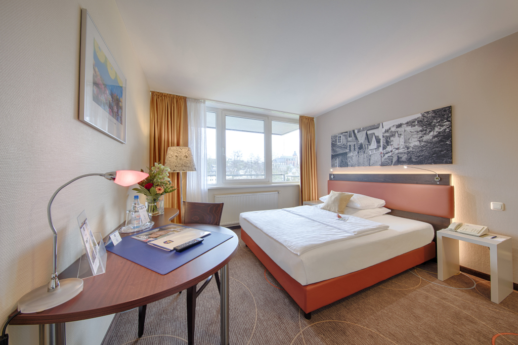 Das klassische Tagungshotel in Wetzlar liegt direkt in der Innenstadt am Lahnufer. In 10 Minuten erreichen Sie zu Fuß die historische Altstadt, den Dom, den Hauptbahnhof sowie die Buderus-Arena.